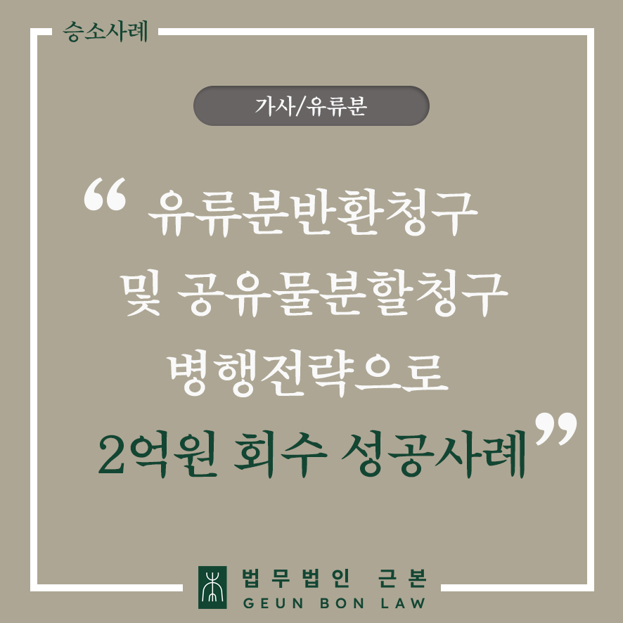 1. 사건의 배경: 장남의 재산 독식과 형제들의 권리 찾기어머니 사후, 평생 경제적 지원을 받아온 장남이 상가와 현금 등 모든 유산을 자신의 소유라고 주장하며 다른 형제들과의 소통을 차단했습니다. 이에 동생들은 ‘안심상속원스톱서비스’를 통해 상가 건물이 유증을 통해 장남에게 넘어간 정황을 파악한 뒤, 상속 분쟁의 해결을 위해 저희 법무법인 근본에 내방하셨습니다.2. 근본의 해결 전략: 실질적 재산 회복을 위한 3단계 법적 조치저희 법무법인 근본은 판결에서의 승소에만 머무르지 않고, 의뢰인께서 실질적인 이익을 확보하실 수 있도록 분쟁 초기부터 3단계의 치밀한 전략을 수립하여 실행에 옮겼습니다.1단계: 유류분반환청구소송을 통한 ‘상가 지분’ 확보우선 장남이 유증으로 단독 상속한 상가 건물에 대해 유류분반환청구소송을 제기하여 의뢰인들의 법적 권리를 확보하는 데 주력했습니다. 공동상속인에 대한 증여는 시기와 무관하게 유류분 산정 기초재산에 포함된다는 법리(대법원 1996. 2. 9. 선고 95다17885 판결)를 적극적으로 변론하였습니다. 그 결과, 법원은 장남으로 하여금 각 동생에게 상가 지분 1/6씩을 이전하라고 선고하였고, 이를 통해 의뢰인들은 상가의 공동 소유주로서의 법적 지위를 얻는 중요한 발판을 마련했습니다.2단계: 추가 소송으로 ‘생전 증여 현금’까지 반환 요구저희는 이에 안주하지 않고, 장남이 생전에 받은 현금 8천만 원과 피상속인의 예금 약 3천만 원을 더한 약 1억 1천만 원을 기초로, 의뢰인 각자의 유류분 부족액 약 1,833만 원(1억 1천만 원 × 1/6)을 산정하여 별도의 반환 청구 소송을 진행했습니다. 이는 부동산 지분에 더해 현금 유류분까지 청구함으로써 상대방에 대한 압박 수위를 한층 끌어올리는 계기가 되었습니다.3단계: 공유물분할 및 부당이득반환 청구로 협상 테이블 강제연이은 승소에도 불구하고 장남이 “지분은 인정하나 금전 지급은 불가하다”는 비협조적인 태도를 고수하자, 저희는 상대를 협상으로 이끌어내기 위한 두 가지의 효과적인 법적 조치를 동시에 취했습니다.첫 번째는 ‘공유물분할청구소송’을 통한 강제 매각 압박이었습니다. 유류분 판결로 의뢰인들은 상가의 적법한 공유자가 되었기에, 협의가 결렬되면 법원에 공유물 분할을 청구할 권리가 있습니다. 상가와 같이 물리적 분할이 곤란한 부동산은 법원 결정에 따라 경매를 통해 매각 대금을 지분 비율로 분배하게 됩니다. 이는 장남에게 자신의 주된 생활 터전인 상가 건물이 통째로 매각될 수 있다는 실질적인 위협으로 다가갔습니다.두 번째는 ‘부당이득반환청구’를 통한 재정적 압박이었습니다. 소송이 제기된 이후에도 장남이 상가 임대료 수익 전체를 독점한 행위는 다른 공유자인 의뢰인들의 권리를 부당하게 침해하는 것입니다. 법원은 소 제기 시점부터 장남을 ‘악의의 점유자’로 간주하여, 그 시점부터 발생한 임대료 중 의뢰인들의 지분(각 1/6)에 해당하는 금액 및 이에 대한 이자까지 반환하도록 명할 수 있습니다. 이는 상대방에게 버틸수록 채무가 늘어난다는 지속적인 심리적, 재정적 부담을 안겨주는 쐐기를 박는 조치였습니다.3. 최종 결과: 성공적인 합의와 실질적 이익 회수결국 ‘상가 강제 매각’이라는 극단적 상황과 ‘누적되는 채무’라는 이중의 압박을 감당하지 못한 장남은 협상 의사를 밝혀왔습니다. 저희 법무법인 근본은 협상 단계에서도 의뢰인의 권익을 최우선으로 고려하여, 장남이 두 동생에게 각각 현금 1억 원씩을 지급하는 것을 조건으로 모든 소송을 종결하는 최적의 조건으로 합의를 성사시켰습니다.본 사례는 상속 분쟁에서 진정한 성공이란 판결문 획득을 넘어, 확보된 권리를 어떻게 ‘실질적 이익’으로 현실화할 것인지에 대한 구체적인 실행 계획에 달려있음을 시사합니다. 저희 법무법인 근본은 이처럼 체계적인 단계별 전략을 통해 의뢰인께서 원하시던 실질적인 재산 회복을 이룸으로써 분쟁의 종지부를 찍었습니다.