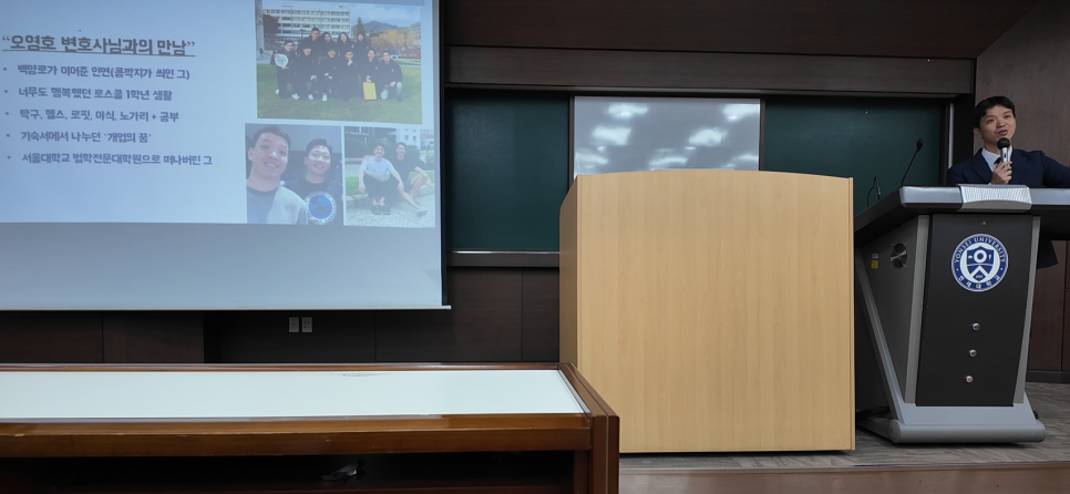 특히 이번 강연에서는 로스쿨 시절 백양로에서 처음 오영호 변호사를 만나게 된 일화를 시작으로,